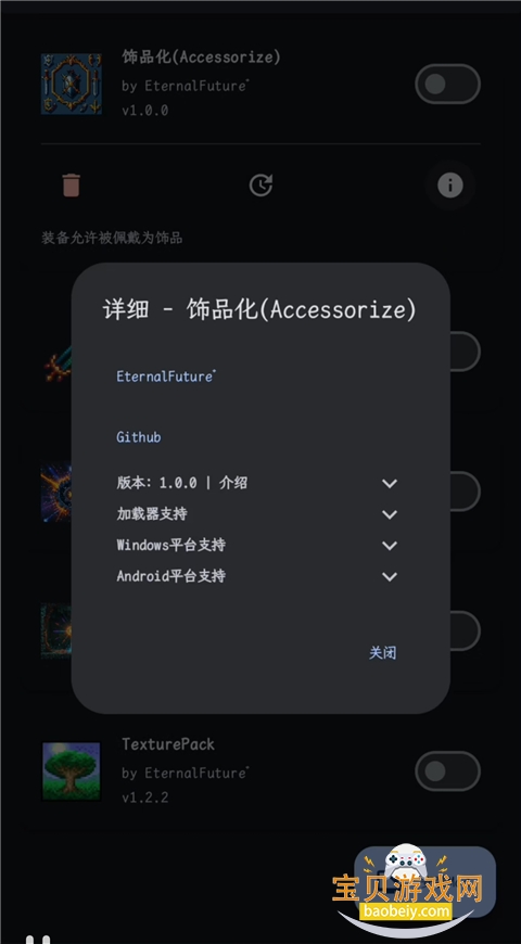 9、点击中间按钮可以更新Mod包,右边按钮可为Mod包的开关。