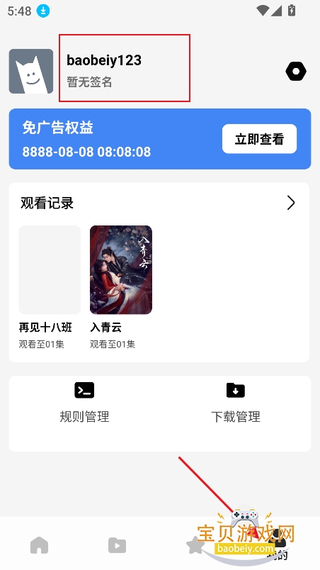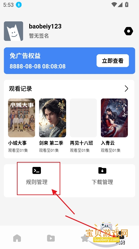 1、进入我的界面,点击【规则管理】