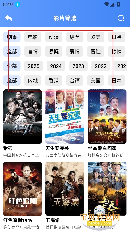 2、点击【影片筛选】可以通过更详细的关键词标签进行筛选