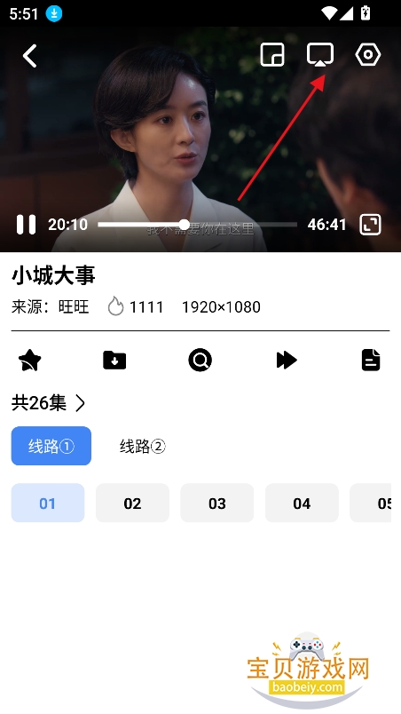 1、进入喜欢的影视播放界面,点击右上角图标