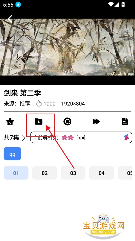 1、同样进入喜欢的视频播放界面,点击【下载】图标