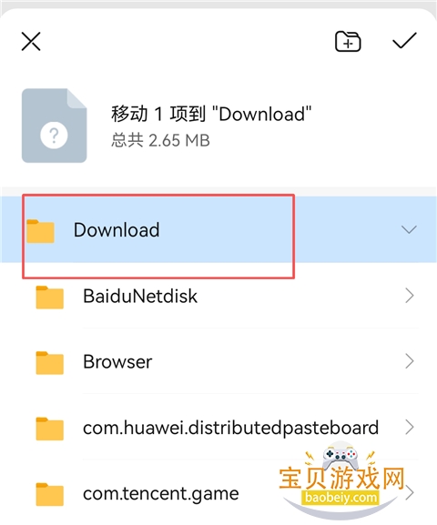 2、然后将该文件移动至手机内存的【Download】文件中。