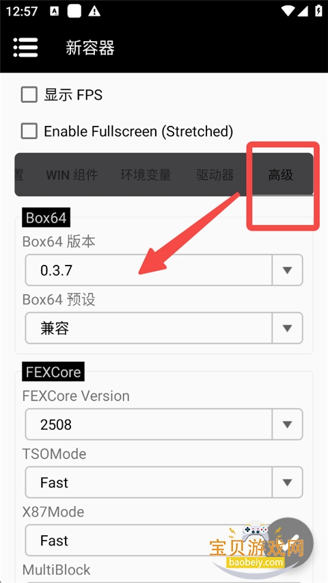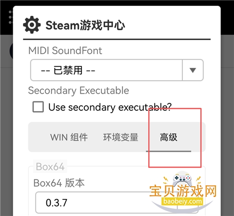 9、下滑,在高级板块,Box64版本选择选择0.37。