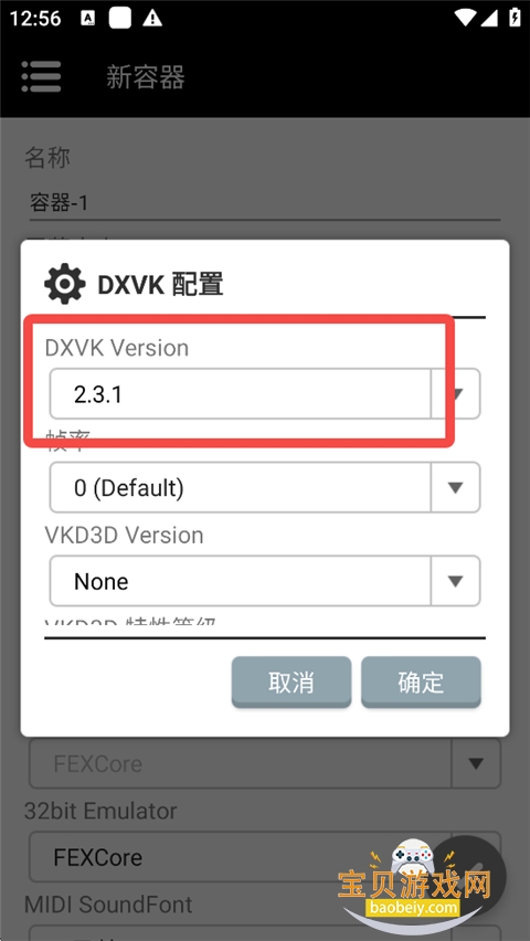 8、点击【DX Wrapper】右侧的齿轮图标,DXVK任意选2.0以上的即可。