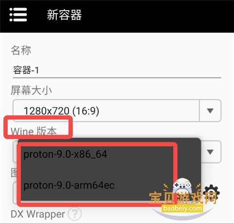 6、在【Wine版本】这里任意选择,×64或arm64都可以,如果你想运行STEAM D加密游戏像黑猴P3R等就选arm64,其他默认。