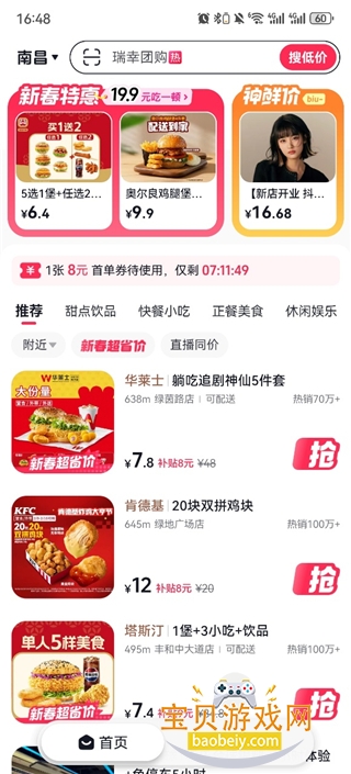 新用户首周每天领至多12元优惠券,春节畅吃、畅喝乐不停。