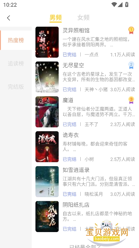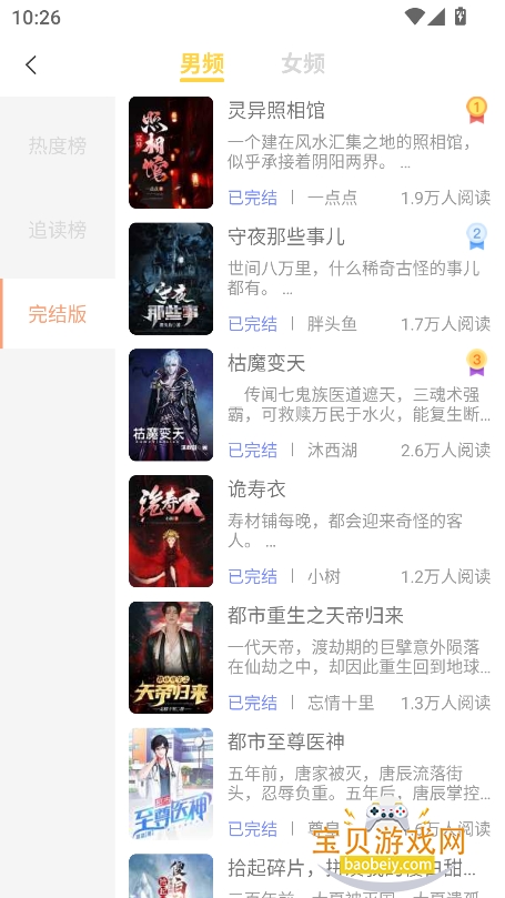 2、或者点击【排行榜】进入,可以查看热榜,追读榜,完结榜等,根据榜单筛选资源