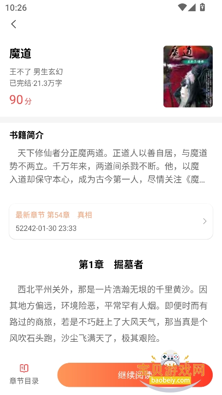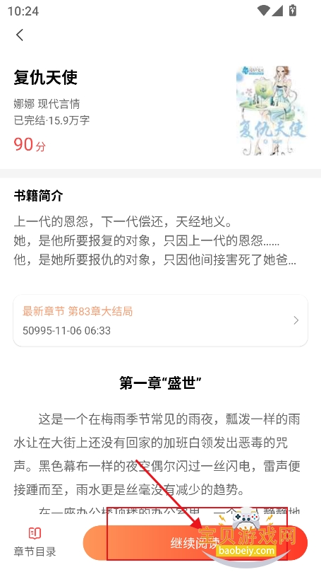 4、进入喜欢的小说界面,点击【继续阅读】