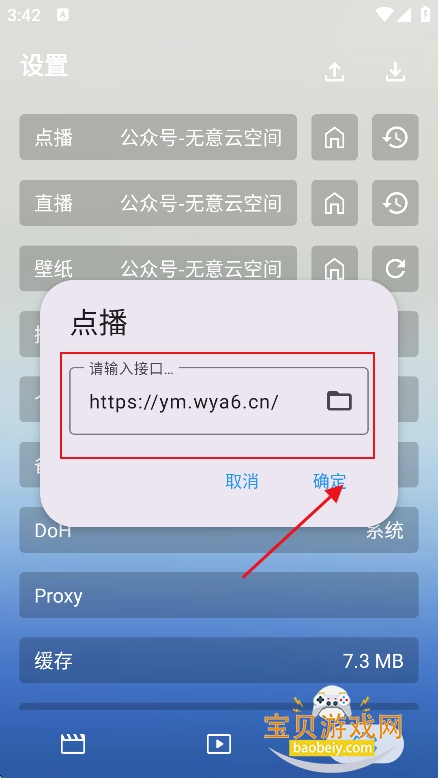 1、进入设置界面,选择配置点播,或者直播接口