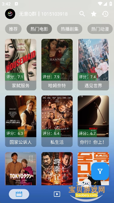 2、然后选择需要观看的影视类型,动漫热播,电影等任意切换