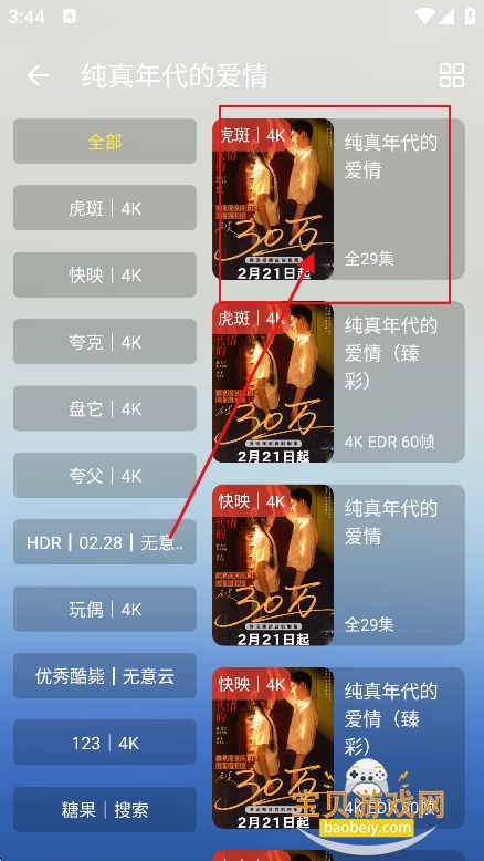 4、根据搜索结果,进入喜欢的影视