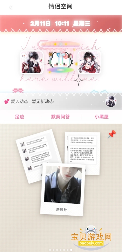 5、进入【情侣空间】还能够查看足迹,以及玩情侣游戏问答等