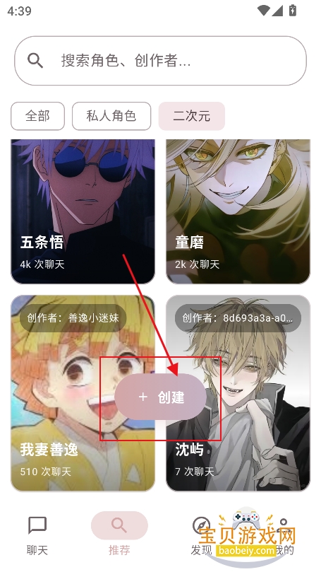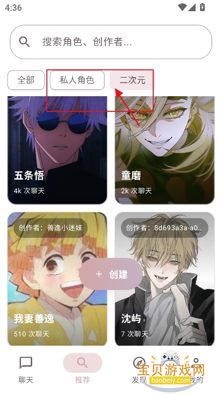1、进入【推荐】界面,可以筛选喜欢的虚拟角色