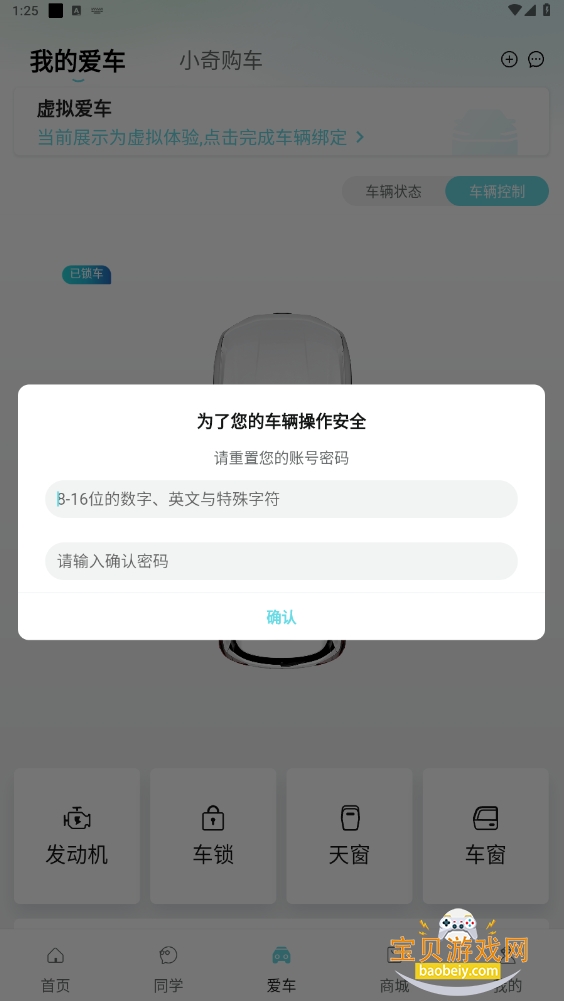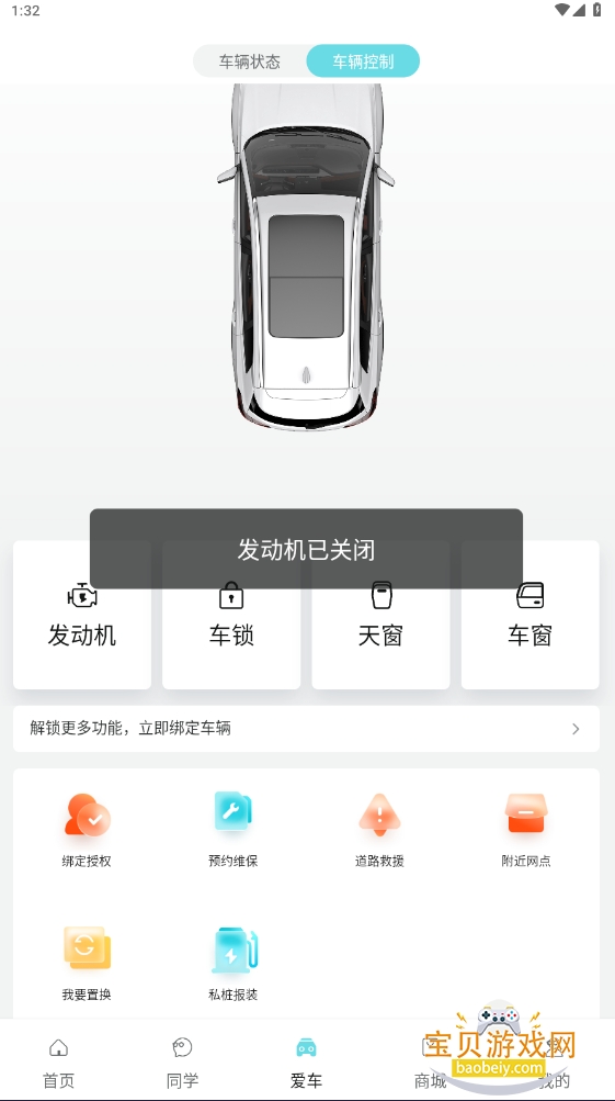 2、点击左上角进行车辆绑定(需设置车辆操作安全密码);