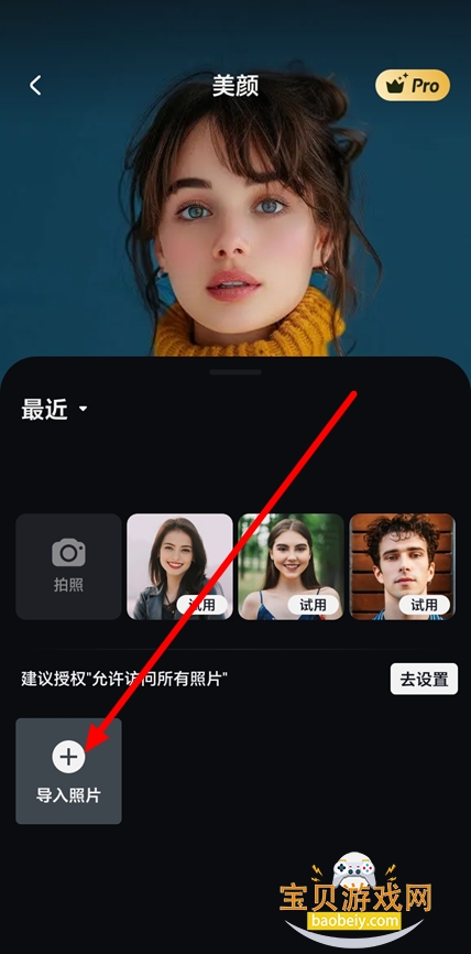 3、权限授予成功,返回首页,点击【导入照片】