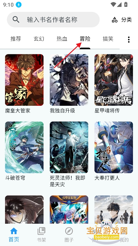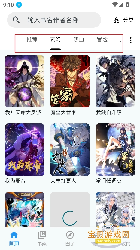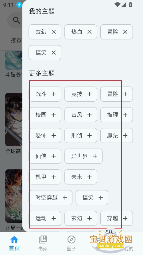 1、进入首页,可以首先筛选喜欢的漫画类型标签