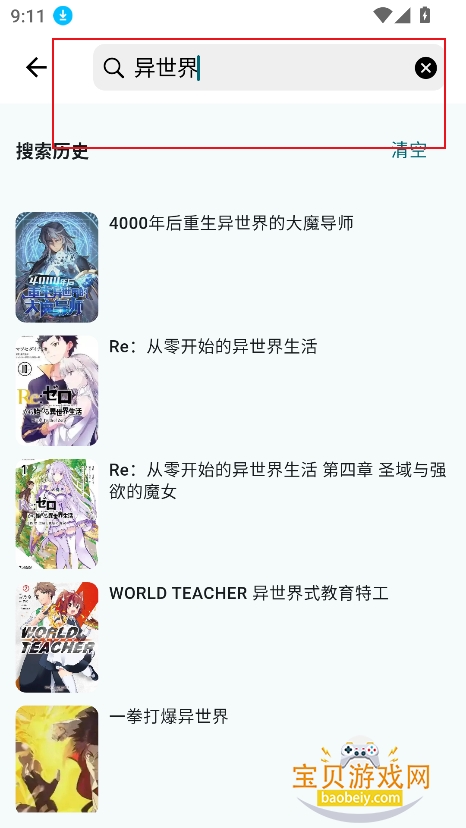 5、点击搜索框,输入关键词,还能够精准定位漫画资源