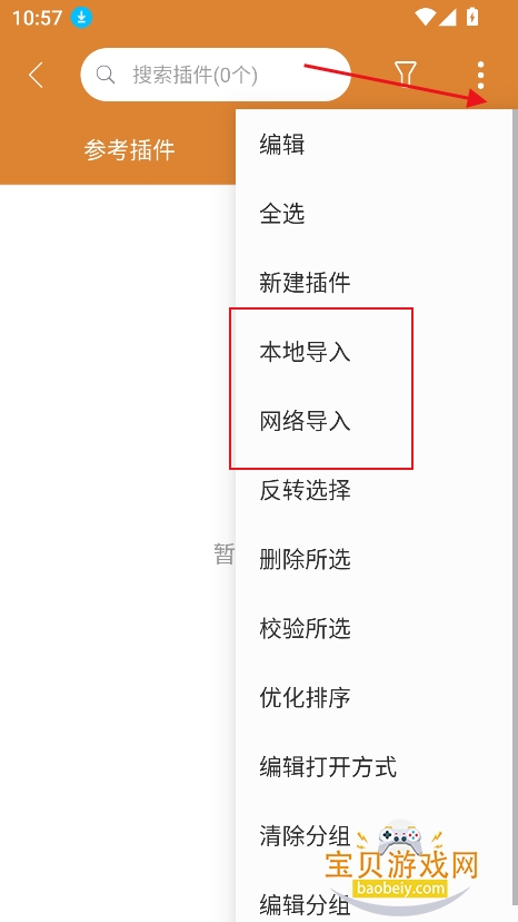 2、进入插件界面,点击右侧三点,选择插件导入方式,支持本地导入,网络导入等