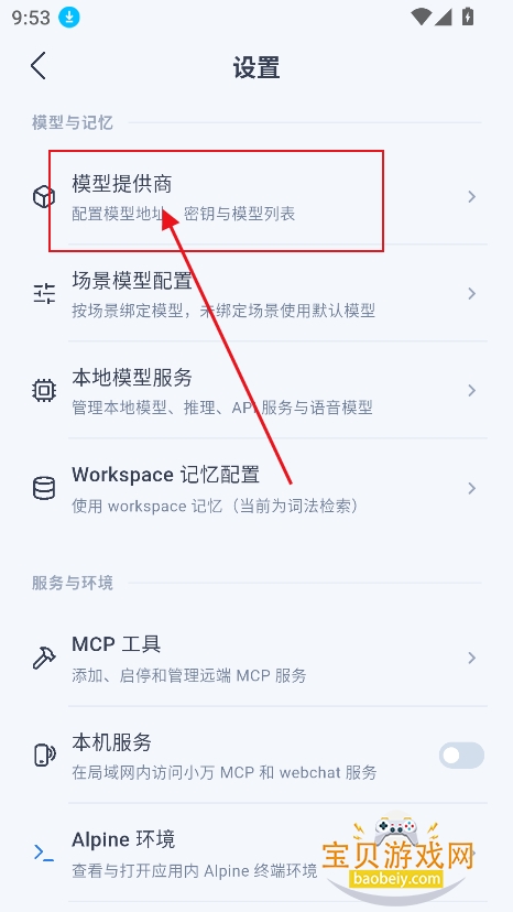 2、在设置界面,点击【模型供应商】
