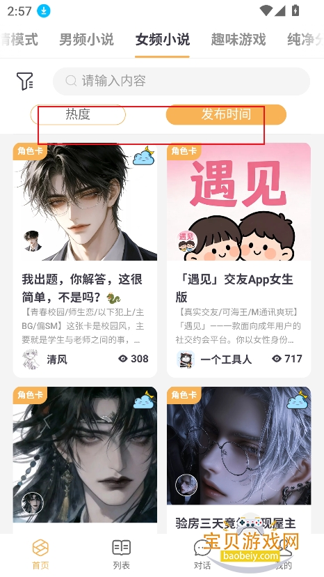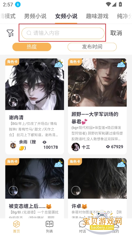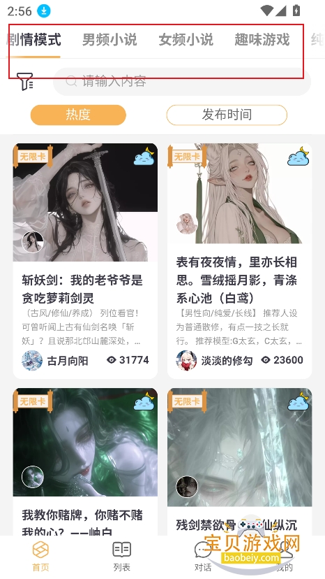 2、还可以根据关键词检索,精准搜索喜欢的文游