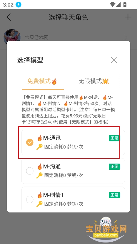 8、选择对话模型,支持免费模式,和无限模式,任意选择