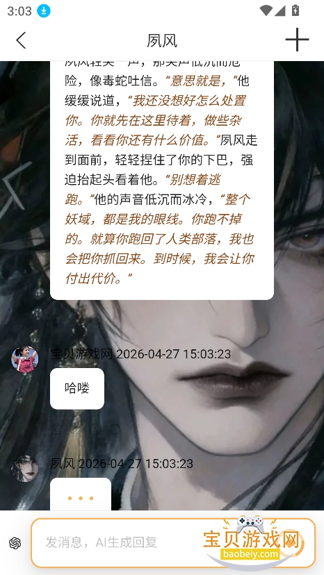 11、最后进入对话界面,就可以根据预设剧情开启你们之间的社交体验了