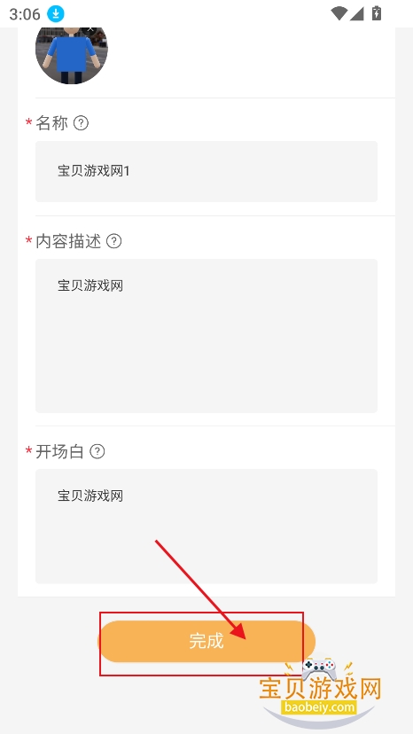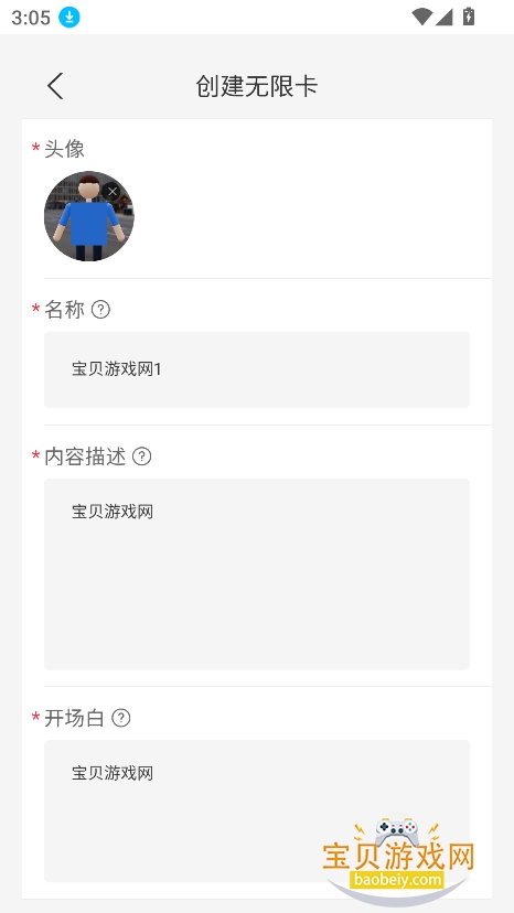 2、在新建界面,输入名字,昵称,开场白,以及内容描述等