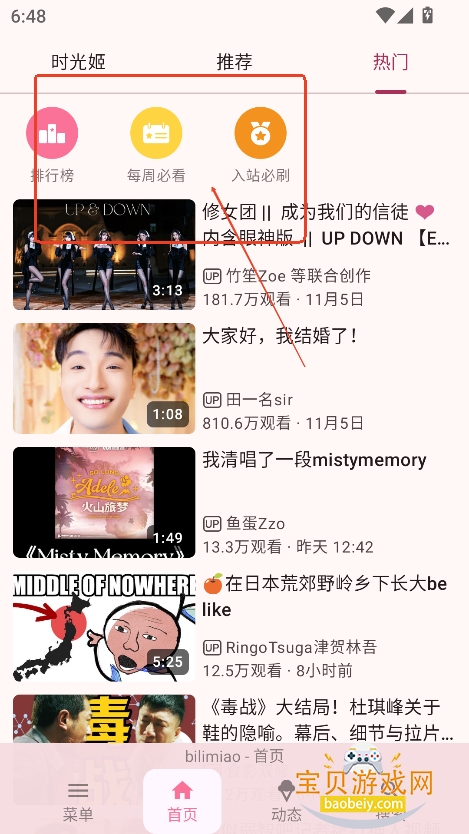 支持按照全站投稿、原创投稿、新番排行榜、新人投稿帮等自定义观看,满足用户多样化的观看需求。