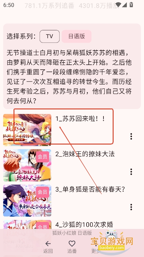 进入播放界面,选择喜欢的剧集